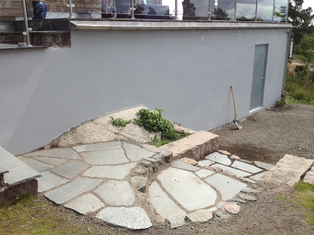 Vi bygger nye og vi restaurerer eldre uteområder, som innkjørsler, gårdsplasser, trapper, støttemurer, terrasser og hagemiljø. Vi kan bidra med forslag og løsninger, og vi samarbeider også med arkitekter.